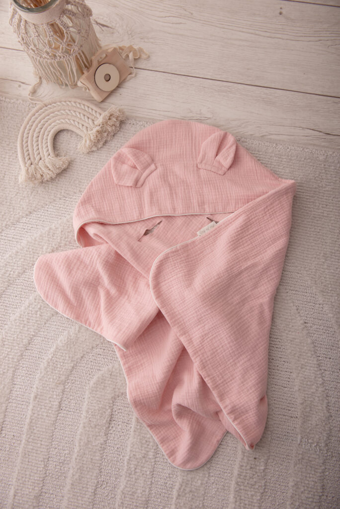 Seria Muślinowa została dopracowana w najmniejszych szczegółach aby zapewnić bezpieczeństwo maluszkom. Nie tylko materiały użyte w produkcji ale również dodatki takie jak biza czy metka są wykonane z bawełny.