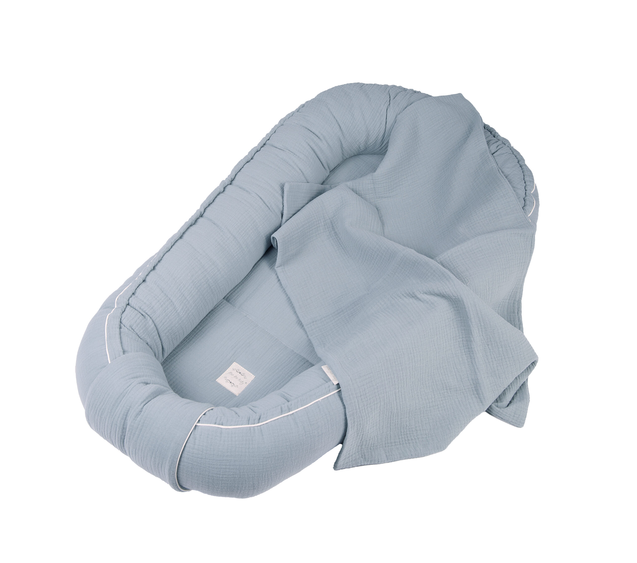 - Kokon uszyty jest z najwyższej jakości tkaniny muślinowej double gaze o wysokiej gramaturze. Pomiędzy zastosowaliśmy specjalne wypełnienie z puszystej kulki silikonowej, również antyalergicznej.