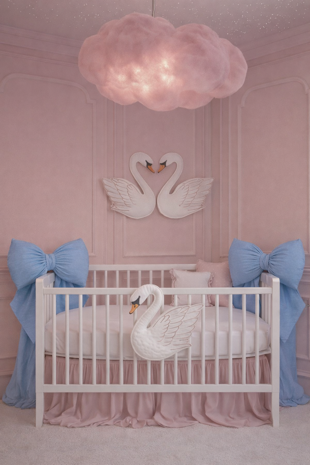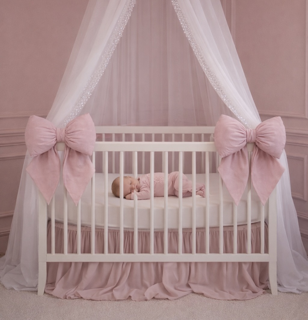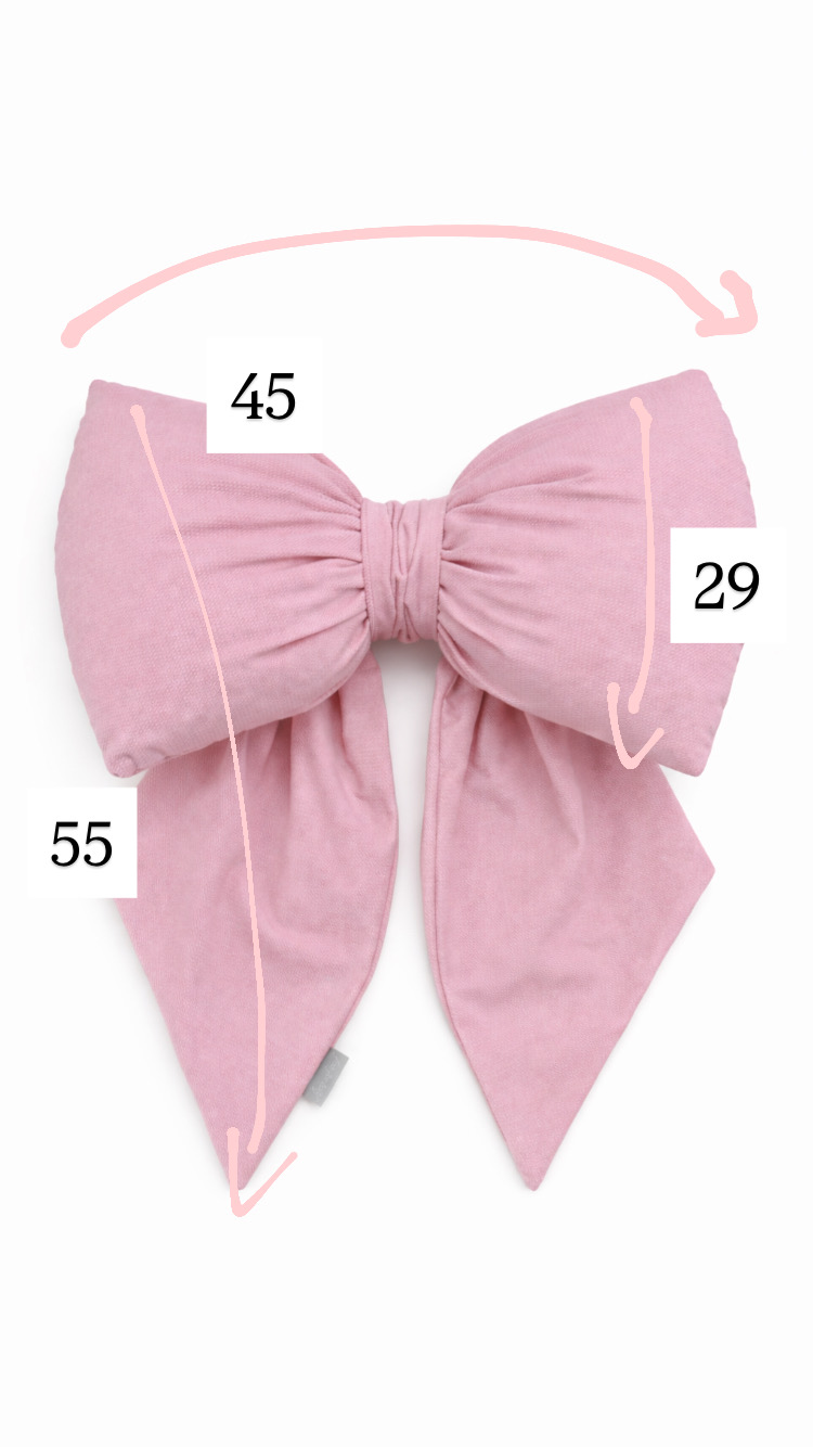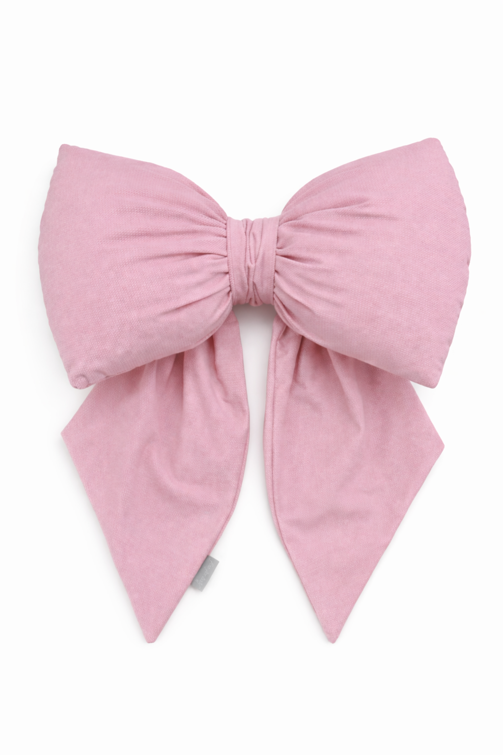 Stylowa, duża kokarda wykonana z miękkiego, przyjemnego w dotyku weluru to wyjątkowy dodatek, który nadaje dziecięcej przestrzeni uroku i subtelnej elegancji. Jej efektowny kształt oraz staranne marszczenie w centralnej części sprawiają, że pięknie się prezentuje i przyciąga wzrok.