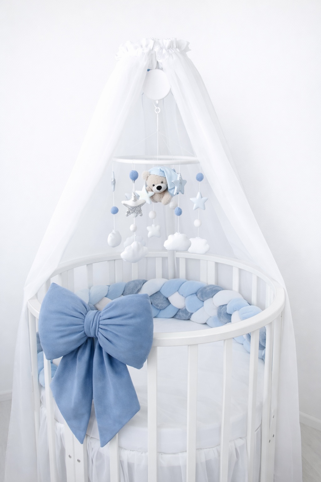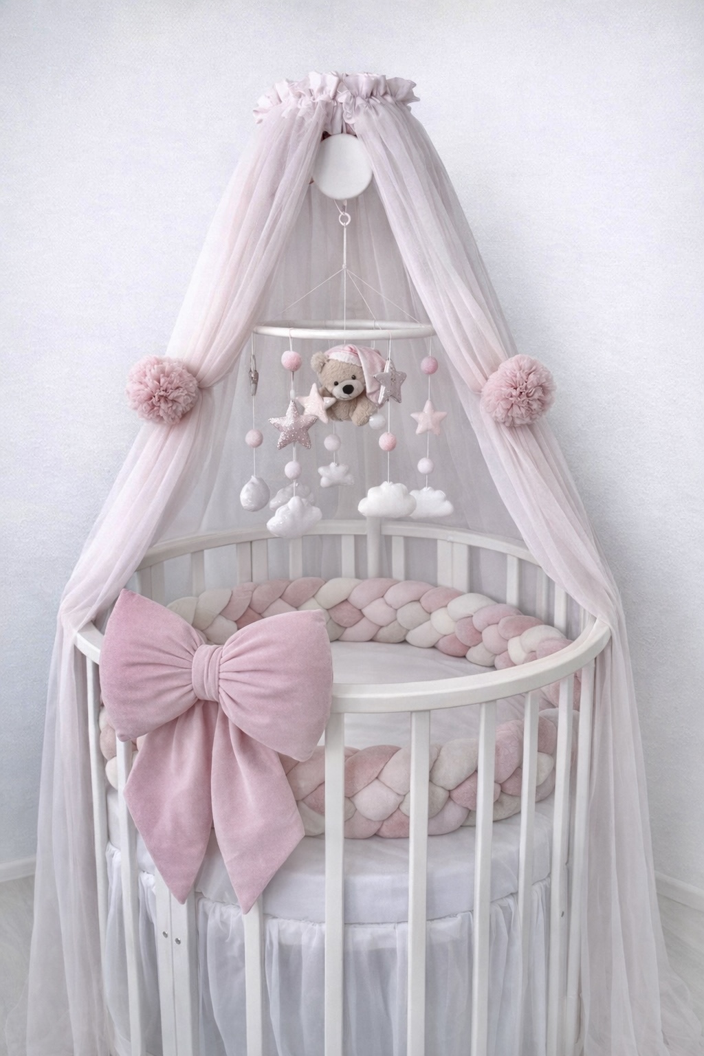 Kokarda welurowa – elegancka ozdoba do wózka i łóżeczka dziecięcego